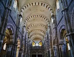 Die Kirche Sainte Marie-Madeleine ist eine dreischiffige Basilika mit einer Außenlänge von 120 m und mit sehr lang gezogenem Langhaus (zehn schmalrechteckige Travéen), einem kaum auskragenden Querhaus und einem Umgangschor mit Kranzkapellen. Das 1120–1140 errichtete Langhaus zeigt rein romanische Formen. Die von 1145 bis 1260 (Südwestturm) gestaltete Westfassade befindet sich im Übergang von der Romanik zu Gotik. Der von 1185 bis 1215 geschaffene Chor ist frühgotisch mit leichten romanischen Reminiszenzen.