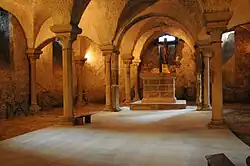 Die Krypta befindet sich unter dem erhöhten Chor. Sie ist 19 m lang und 9,20 m breit. Sie besitzt ein Kreuzgratgewölbe, das auf zwölf Säulen unterschiedlicher Größe ruht. Die Krypta enthielt angebliche Reliquien der Maria Magdalena. Aufgrund einer vertraglichen Vereinbarung der Kirche von Vézelay und der Kirche von Saint-Maximin-la-Sainte-Baume befindet sich der mutmaßliche Schädel von Maria Magdalena in einem Reliquiar in der Krypta der gotischen Basilika von Saint-Maximin-la-Sainte-Baume.