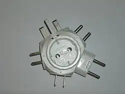 Weiterhin gab es nach TGL 200-3763[3] 5-polige ovale Steckverbinder (RST, N, vorauseilender PE) in Bakelitgehäusen für 10 Ampere.