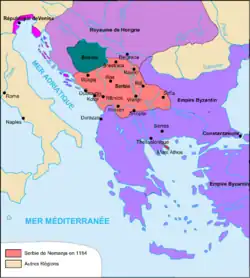 Nemanja hielt Byzanz zunächst die Treue, wagte aber von 1183 bis 1190 einen Aufstand und eroberte mit Hilfe Ungarns Ostraszien, Zeta einschließlich der Stadt Shkodra, die Stadt Kotor und die gleichnamige Bucht von Kotor, Teile Bulgariens und Mazedoniens. Nur Dubrovnik konnte seinen Angriffen widerstehen. In Niš traf Nemanja 1189 Kaiser Friedrich Barbarossa, der auf dem Dritten Kreuzzug über Niš entlang der Via Militaris nach Kleinasien zog. Dabei eroberten die Heere Sofia.