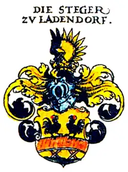 Die Steger von Ladendorf stammen aus Oberösterreich und verzweigten sich später auch in Niederösterreich.[1] Sie sind nicht zu verwechseln mit anderen Geschlechtern mit Namen Steger, wie den ebenfalls erloschenen Steger auf Sankt Veit, Niederösterreichischem Uradel, deren Wappen eine Wolke und einen Stern zeigt, oder Johann Steger auf Hirschstetten, Bürgermeister zu Wien, Kellermeister in Österreich, gestorben 1457, als ersten Namensträger dieses Geschlechts. Auch die ebenfalls erloschenen Ladendorfer (Adelsgeschlecht) sind eine andere Sippe.
