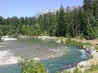 - ↑ Course info mainly from USGS topographic maps and Washington Road & Recreation Atlas. Fourth Auflage. Benchmark Maps, 2007, ISBN 978-0-929591-98-8.
