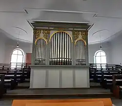 II/P | 25 | Neubau in historischem Gehäuse. Mensuren und Disposition von Ernst Karl Rößler. Zunächst nur 19 Register. 1974 werden 6 fehlende Register eingebaut. |