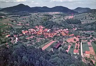 Der Ort liegt im südöstlichen Gemeindegebiet mitten im Wasgau, wie der Südteil des Pfälzerwaldes auch genannt wird, im sogenannten Gossersweiler Tal. Unmittelbar westlich des Siedlungsgebiets erhebt sich der 406 Meter hohe Eichelberg. Im näheren Einzugsgebiet befinden sich mehrere als Naturdenkmale eingestufte Felsformationen wie der Engelmannsfelsen unmittelbar nordwestlich des Siedlungsgebiets sowie der Dreifelsen, und der Krimhildenstein, die beide weiter südwestlich liegen. Letzterer ist als Steiner Nadel zudem Teil des Klettergebiet Südpfalz.[2] Rund zwei Kilometer südwestlich des Ortes entspringt der in Ost-West-Richtung verlaufende Klingbach, der das Siedlungsgebiet jedoch nicht berührt.