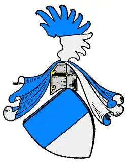 Der Wappenschild ist von Blau und Silber geteilt. Den Helm mit blau-silbernen Decken ziert ein wie der Schild tingierter Flug.