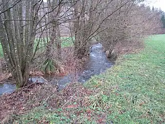 Steinbach-Lauf nach dem zweiten Teich durch den der Bach fließt -