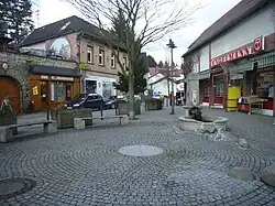 Das älteste Dorf war ein Runddorf, dessen Häuser sich in einem Umkreis von 100 Metern um den alten Laufbrunnen am Freien Platz (früher im Volksmund „Dalles“ genannt)[2] gruppierten. Der dortige Brunnen („Bütt“) lieferte den Einwohnern Trinkwasser. Wasserleitungen wurden, wie die Gasleitungen, erst 1954 gelegt, nachdem Steinbach Gemeinde im Obertaunuskreis geworden war. Vom Freien Platz aus führen noch heute Unter- und Kirchgasse sowie Bornhohl – in der Verlängerung die Obergasse – ab.