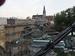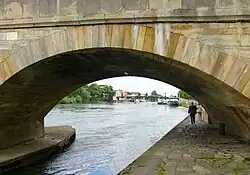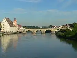 Mit einer Bauzeit von 1135 bis spätestens 1146[1] gilt die komplett aus Stein erbaute[1] Steinerne Brücke als ein Meisterwerk mittelalterlicher Baukunst und als die älteste erhaltene Brücke in Deutschland.[2][Anm. 1]