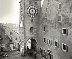 Bei der Rückeroberung der von österreichischen Truppen besetzten Stadt durch französische und bayrische Truppen im Jahr 1809 wurde der nördliche Brückenturm, genannt Schwarzer Turm, im Laufe der Schlacht bei Regensburg schwer beschädigt und ein Jahr später abgebrochen.
