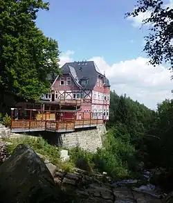 In der Schlucht steht oberhalb einer 519,5 m hoch gelegenen Flussstelle das Waldgasthaus und Hotel Steinerne Renne. Zudem stand früher in der Schlucht etwas östlich einer über die Holtemme führenden Wegbrücke (346 m[1]) unterhalb des Felsens Silberner Mann die Gaststätte Am Silbernen Mann.