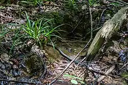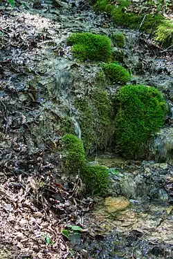 Etwa 100 Meter oberhalb der Rinne befindet sich die Quelle des kleinen Rinnsals und hat hier auch einige Sinterterrassen gebildet. Sie entspringt im Grenzbereich von Dogger und Malm. Im Anschluss daran ist ein sehr kleines und etwa 50 Meter langes und niedriges Hochbett aus Travertin entstanden. Nach der Rinnenbildung mündet das Wasser in ein kleines Bachbett, welches nach etwa 1,2 Kilometer bei Hallershof in den Hammerbach mündet. Nach längeren Trockenperioden versiegt die Quelle.