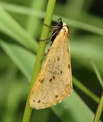 Der Steinflechtenbär, Gelbe Schwarzpunkt-Flechtenbär, Dottergelbe Mottenspinner oder das Trockenrasen-Flechtenbärchen (Setina irrorella) ist ein Schmetterling (Nachtfalter) aus der Unterfamilie der Bärenspinner (Arctiinae).