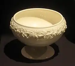 In den Töpfereien von Staffordshire wurde um 1720 eine steingutähnliche Masse entwickelt, die auf der Grundlage von weißem Ton und einem Zusatz von Quarzmehl die Herstellung eines sehr hellen, harten und leichten, weil dünn ausformbaren Scherbens ermöglichte. Überregionale und bald auch über England hinaus wirksame Bedeutung erhielt die neue Technik, als Josiah Wedgwood dieses, dem Porzellan angenäherte Material durch Zusatz von Kaolin weiterentwickelte. Sein 1757 gegründetes Unternehmen nahm bald industrielle Züge an. Zugleich schuf er einen neuen Steingutstil, indem er dem Geschmackswandel seiner Zeitgenossen zum Klassizismus folgte und sich von antiken Vorbildern inspirieren ließ.