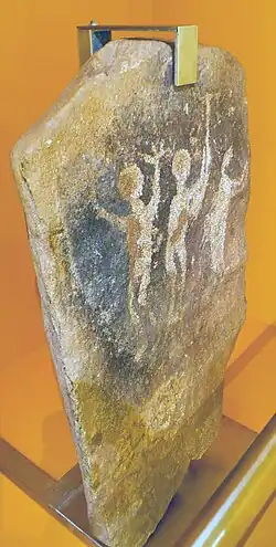 Die größte Besonderheit der Steinkiste ist der südliche Abschlussstein mit einer bildlichen Darstellung. Er ist besonders sorgfältig gespalten und weist drei eingemeißelte menschliche Figuren auf. Die Wiedergabe der Personen ähnelt den Felsbildern Südskandinaviens, sind aber die einzigen bisher in Deutschland gefundenen. Daher rief der Bildstein viel Aufsehen hervor, auch weil er erst Wochen später gefunden wurde. Der schon früh geäußerte Verdacht, der Stein wäre nachträglich manipuliert worden, konnte nie ganz ausgeräumt werden.