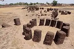 Im Süden der historischen Region Senegambia liegen im Ostteil Gambias und den nördlich daran angrenzenden Bereichen Senegals in einem Band von 100 Kilometer Breite und 350 Kilometer Länge entlang des Flusses Gambia mehr als 1000 Steinkreise aus der Zeit zwischen dem 3. Jahrhundert vor Christus und dem 16. Jahrhundert nach Christus.[2] Sie unterscheiden sich von den meisten anderen megalithischen Steinkreisen weltweit, die in der Regel aus unbehauenen Steinen bestehen, durch die Verwendung von behauenen Steinsäulen aus Laterit.