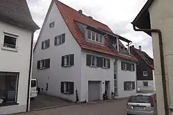 1819/23 wird das Haus als zweistöckig bezeichnet.[3] 1831 und 1846 war die Grundmauer und der Ofen von der Versicherung ausgenommen[4]. 1868 wird erstmals erwähnt, dass das Haus ganz von (Bruch)Stein erbaut sei und das Dach mit Platten und Hohlziegeln gedeckt sei.[5] 1868 wird auch erstmals die Zimmeraufteilung beschrieben. Die Fundamente, Umfassungsmauern des ersten Stocks, die Kellermauern und das Kellergewölbe waren nicht versichert. Das Haus ist in seiner wesentlichen Bausubstanz bis heute erhalten, wenngleich die Fassade durch Fenster- und Garageneinbauten verändert worden ist. Stark verändert wurde das Satteldach durch den Umbau zu Wohnungen und Anbringung von großen Dachgauben und Fensterdurchbrüchen. Ebenso starke Modernisierung zeigt das Innere des Gebäudes.