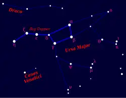 Helle Sterne wurden vermutlich schon in der Jungsteinzeit zur visuellen Orientierung genutzt, zu Sterngruppen zusammengefasst und als Figuren gesehen, was jedoch in Ermangelung von Quellen vor Erfindung der Schrift schwer festgestellt werden kann. Sicher ist, dass die Sichtbarkeit von Sternbildern erste Kalender inspirierte: in Naturreligionen sieht man den Bezug der Sternbilder zu Vorgängen in der Natur (Regenzeiten, Brut-/ Balzverhalten von Tieren) noch deutlich.[9] In den Kulturen Eurasiens wurden allerdings die Gestirne in neue Religionen eingefügt und umgedeutet.[10] Durch die Bildung neuer, multikultureller Großreiche gingen viele der ursprünglichen religiösen Bedeutungen verloren und seit der Antike werden die Sternmuster mythischen Gestalten, Tieren oder Gegenständen zugeordnet. Ein bekanntes Beispiel ist der Große Bär (Ursa maior), dessen hellste sieben Sterne auch als Großer Wagen bezeichnet werden, weil sich hier die babylonische und makedonische Kultur zum damals neuen „Griechischen“ vermischte.[10]
