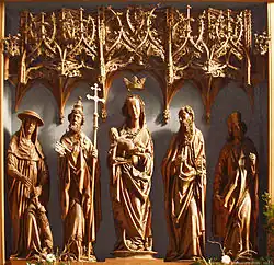 Der kunstvoll geschnitzte Hochaltar im Hochchor stellt kunsthistorisch betrachtet die größte Kostbarkeit der Stiftskirche dar. Das Werk aus dem Jahr 1498 stammt von einem unbekannten Meister und wurde als Dank für die Fertigstellung des Bauwerks vom Herrscherpaar Graf Kraft VI. und seiner Gemahlin Helena gestiftet. Der Hochaltar zeigt fünf geschnitzte Figuren: Maria mit dem Jesuskind auf einer Mondsichel, die Patrone der Kirche (Petrus und Paulus) sowie Hieronymus und Veit. Die fünf ungefassten Figuren stehen in einem neuen Gehäuse, das Originalgehäuse wurde 1945 zerstört. Aus derselben Zeit wie der Hochaltar stammt auch die geschnitzte Jesusfigur am Kreuz.
