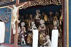 Weitere Schnitzfiguren, die an verschiedenen Stellen in der Kirche aufgestellt sind, stammen aus der Zeit kurz vor und nach 1500. Dazu zählen eine Darstellung des Erzengels Michael als Seelenwäger, eine sogenannte schöne Madonna sowie zwei Skulpturen des auferstandenen Christus, eine beschädigte, bei der der fast nackte Christus mit Leidensmiene auf die Seitenwunde weist, und eine, die den in ein rotes Tuch gehüllten Auferstandenen mit fehlenden Händen zwischen zwei Engeln zeigt. Die letzten drei Figuren standen vermutlich ursprünglich im Auszug eines Altars.