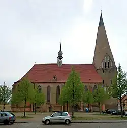 Die Stadt- oder Stiftskirche wurde in der zweiten Hälfte des 13. Jahrhunderts ursprünglich als Kollegiatstiftskirche der Residenz der Schweriner Bischöfe erbaut. Sie ist eine dreischiffige Hallenkirche mit polygonalem Chor und einem 74 Meter hohen Turm. Die Kirchengemeinde gehört zur Propstei Rostock im Kirchenkreis Mecklenburg der Evangelisch-Lutherischen Kirche in Norddeutschland.