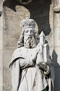 - König Josaphat mit dem Gesetzbuch (Sinnbild für Regeltreue).
