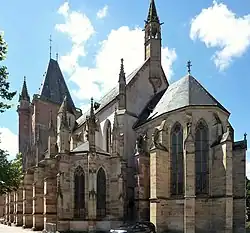 Die Errichtung des Neubaus dauerte bis 1385, ein verheerender Brand am 4. Juni 1287, der nur den Chor unversehrt ließ, sowie der Unfalltod des Architekten Gerlach von Steinbach (Sohn Erwin von Steinbachs) 1330 verzögerten die Fertigstellung. Im Laufe des Bauernkriegs 1525 wurde die Kirche geplündert und am 6. Juni 1633 wurde sie im Zuge des Dreißigjährigen Kriegs von schwedischen Soldaten in Brand gesteckt. Der im Laufe der nächsten Jahrhunderte vernachlässigte bis gegen seinen Zweck missbrauchte Bau (1744 diente er als Schlachthaus) wurde erst im Zuge von umfassenden Restaurierungsmaßnahmen 1853 bis 1887 im ursprünglichen Glanz wiederhergestellt. 1990 bis 2006 erfolgte eine erneute Generalüberholung.