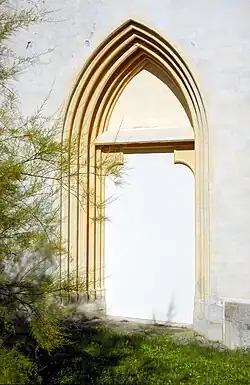 An der Südfassade ist ein vermauertes, spätgotisches, spitzbogiges Gewändeportal mit schulterbogiger Türöffnung aus dem Anfang des 16. Jahrhunderts und eine aufgedeckte kielbogige Lichtnische.