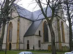 Am Ostabschluss der Kirche befinden sich einige Grabmale ehemaliger Stiftsdamen überwiegend aus dem 17. Jahrhundert. An der Nordseite steht ein Ehrenmal für die im Ersten Weltkrieg gefallenen Soldaten der Gemeinde.