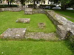 Bei Ausgrabungen in den Jahren 1963/64 hat sich, neben einigen wenigen noch älteren Bebauungsspuren, ein dem ersten Drittel des 10. Jahrhunderts zugehöriger, etwa 18,50 Meter langer Saalbau mit Ostapsis und Westempore als ältester Baukörper erwiesen.