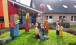 Holzfiguren im Eingangsbereich der Anlage
