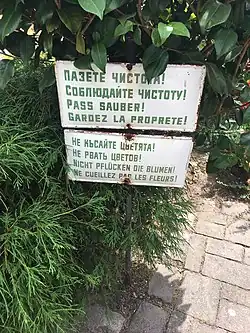 Bulgarisches Schild in einer Beetanlage