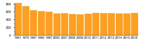 | Einwohner | 823 | 742 | 640 | 615 | 603 | 560 | 567 | 546 | 535 | 549 | 569 | 564 | 562 | 561 | 558 | 574 |