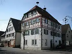 - Das ehemalige Rathaus wurde 1604 als Amtshaus für den vom Deutschen Orden eingesetzten Schultheißen erbaut, erweitert wurde es 1676/78 und 1798. Das Zehnthaus wurde ebenfalls 1604 vom Deutschen Orden erbaut, mit manieristischem Treppenturm an der dem Dorf zugewandten Giebelseite. Auch das nahe Haus John von 1605 weist typische Anzeichen der Deutschordens-Amtshaus-Architektur auf. Alle drei Gebäude sind denkmalgeschützt.