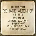 HIER WOHNTE RICHARD ALTENHOFF GEBOREN 1913 IM WIDERSTAND VERHAFTET 3.7.1943 BREENDONK FÜSILIERT 30.3.1944 TIR NATIONAL |
