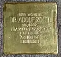 HIER WOHNTE DR. ADOLF ZOTTL JG. 1882 TRANSPORT 12.6.1940 HARTHEIM 'AKTION T4' ERMORDET |