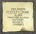 HIER WOHNTE RUDOLF CZIHAK JG. 1905 TRANSPORT 18.6.1940 HARTHEIM 'AKTION T4' ERMORDET |