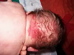 Der Storchenbiss, Nävus Unna (-Politzer)[1], Naevus occipitalis oder Bossard-Fleck ist ein roter Hautfleck, bzw. Naevus flammeus (Feuermal), der meistens am Hinterkopf, seltener auf der Stirn, über dem Kreuzbein oder an den Augenlidern eines Säuglings auftritt.