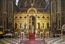 Am Eingang, auf der rechten Innenseite, ist Fürst Michael Stourdza (1794–1884) neben seiner Tochter Maria (1848–1905) dargestellt, die mit dem russischen Prinzen Gorceacoff verheiratet war, und auf der linken Seite Prinzessin Smaragda Stourdza, geborene Vogoride (1810–1885), neben ihrem Sohn Michael (1846–1863). Diese vier Bilder wurden im Jahre 1866 vom Pariser Maler J. Pérignon auf Kupferplatten gemalt.