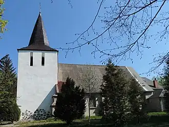 Bis 1945 war die Dorfkirche eine evangelische Verkündigungsstätte. Sie wurde nach dem Zweiten Weltkrieg von der polnischen Administration zugunsten der Römisch-katholischen Kirche in Polen zwangsenteignet und vom polnischen katholischen Klerus ‚neu geweiht‘.