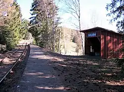 Stráň vor dem Plattenberg (Blatenský vrch)Potůčky zastávka in Stráň (Ziegenschacht) (2019)