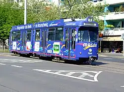 26 Duewag Gelenk­triebwagen Typ Mann­heim 6 nein 1973–1977 7762 im Jahr 2000 nach schwerem Unfall zum Achtachser 0051 umgebaut (siehe unten), bis auf 7553 (Museumswagen am Schönberger Strand), 7751, 7752, 7755, 7756, 7758, 7761 mittlerweile alle ausgemustert, Wagen 41 (7356) seit 2008 Museumswagen