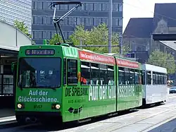 0751–0762 12 Alstom / Bombardier Gelenk­triebwagen NGT8D 8 ja 2007 Gleichartige Wagen verkehren in Darmstadt, Gera und Magdeburg. Sechs Wagen (0754–0759) sind mit einer Kupplung für den Beiwagenbetrieb ausgestattet.