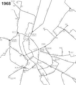 Nach der Eröffnung der U-Bahn-Linien M2 und M3 in den 1970er Jahren wurden viele Straßenbahnlinien eingestellt oder gekürzt. Danach sollten die restlichen Straßenbahnlinien als Zubringer zur U-Bahn verkehren.