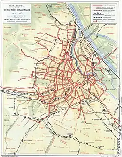 Nach seiner Wahl zum Bürgermeister, 1897, begann Lueger mit der konsequenten Kommunalisierung städtischer Dienstleistungen, die bis dahin von Privatunternehmen erbracht worden waren. 1899 erhielt die Stadt Wien vom k.k. Eisenbahnministerium per Kundmachung,[16] von Minister Heinrich von Wittek gezeichnet, auf 90 Jahre die Konzession „eines Netzes von mit elektrischer Kraft zu betreibenden normalspurigen Kleinbahnlinien in Wien“. Die 99 in der Kundmachung explizit genannten Strecken(teile) umfassten Neubaustrecken und den Kauf des Netzes der Wiener Tramwaygesellschaft (WT), deren Mitarbeiter so weit wie möglich von der Stadt zu übernehmen waren. Zu diesem Zweck wurde die WT liquidiert und stattdessen von deren Hauptaktionär Siemens & Halske 1899 die „Bau- und Betriebsgesellschaft für städtische Straßenbahnen in Wien“ (BBG) gegründet.[10] Die Linien wurden in Folge in den am 4. April 1902 ins Handelsregister eingetragenen Betrieb Gemeinde Wien – Städtische Straßenbahnen integriert. 1903 wurde auch das Netz der Neuen Wiener Tramwaygesellschaft gekauft. Im selben Jahr wurde Ludwig Spängler der Direktor des Unternehmens, er sollte die Wiener Straßenbahn als Leiter bis 1930 nachhaltig prägen.