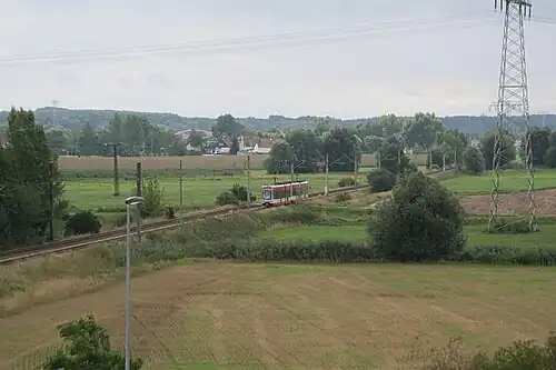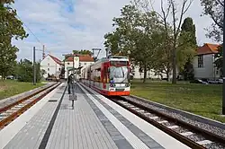 Straßenbahn der Linie 5 in Schkopau (2009)