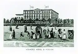 Das alte Hotel Hübner, in dem Gäste wie Hans Albers, Barbara Hutton, die Familie Krupp und der Großherzog von Mecklenburg und 1871 auch Theodor Fontane[4] abgestiegen waren, war aufgrund der modernen Anforderungen an einen Hotelbetrieb nicht mehr nutzbar und wurde daher durch einen Neubau ersetzt.[5]