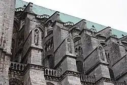 Das Strebewerk (seltener Strebeapparat[1]) ist ein zentrales konstruktives und gestalterisches Element der gotischen Kathedrale.[2] Es setzt sich aus Strebepfeilern und ggf. Strebebögen zusammen. Das Strebewerk dient dazu, den Gewölbeschub und die Windlast aus dem Mittelschiff einer Basilika und dem Hochchor beim Umgangschor abzuleiten.
