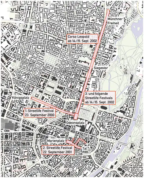 85. a b Martin Schmitz: Streetlife Festival in der Ludwig- und Leopoldstraße mit dem “Corso Leopold” am 13.+14.9.2008. In: ganz-muenchen.de. 14. September 2008, abgerufen am 25. September 2016.