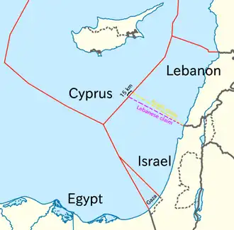2022 inszenierte die libanesische islamistische militante Gruppe Hisbollah mehrere Drohnenangriffe auf die israelische Infrastruktur im Karish-Gasfeld, von denen keiner erfolgreich war. Im Oktober 2022 wurde ein von den Vereinigten Staaten vermitteltes Abkommen sowohl von Israel als auch vom Libanon akzeptiert, das beiden Nationen den Zugang zu den Gasfeldern ermöglichte und den Streit um die Seegrenzen formell beendete.[1] Am 27. Oktober billigte die Regierung Israels das Abkommen zu einer gemeinsamen Seegrenze mit dem Libanon.[6]