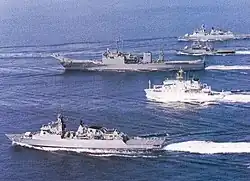 Die malaysische Marine (Tentera Laut Diraja Malaysia) hat eine Personalstärke von 18.000 Mann.[14] Sie operiert von mehreren Häfen und einem Fliegerhorst. Der Verantwortungsbereich der Marine ist in drei Gebiete aufgeteilt, die jeweils von einem Führungskommando (MAWILLA – Markas Wilayah Laut) überwacht werden. Der Marinefliegerhorst befindet sich in Lumut im Bundesstaat Perak. Zudem verfügt die Marine über eine Kampfschwimmer-Einheit, die Pasukan Khas Laut (PASKAL).